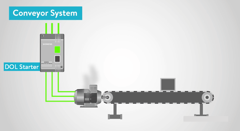 마지막 응용 분야는 컨베이어 시스템입니다. DOL은 커플링 및 베어링과 함께 컨베이어를 구동하는 구성 요소에 부담을 줍니다.