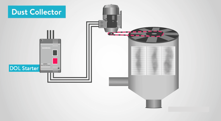 아래 그림의 Air Scrubber 팬은 벨트와 풀리를 사용하는 모터로 구동됩니다. DOL을 사용하면 벨트가 미끄러지거나 마모될 수 있습니다.