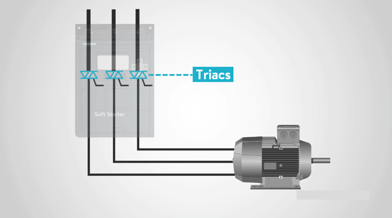 아래 그림은 소프트 스타터의 주요 구성 요소는 모터에 인가되는 전압을 제한하도록 설계된 Triac입니다.