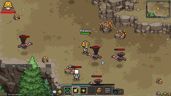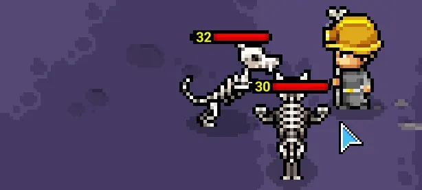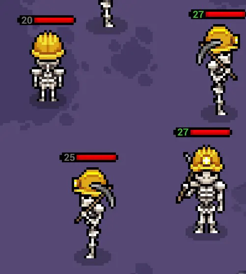 동시에 Skeleton Worker 2 몹과 몇 명의 Skeletal Miner(레벨 25-27)와 싸울 수도 있습니다.
