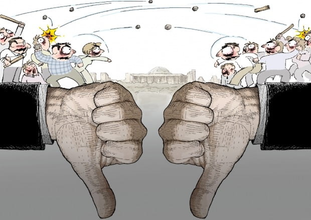 1) 한국 사회는 정치, 미디어 등을 통해 갈등을 심화시키고 혐오로 가득 채우고 있다.